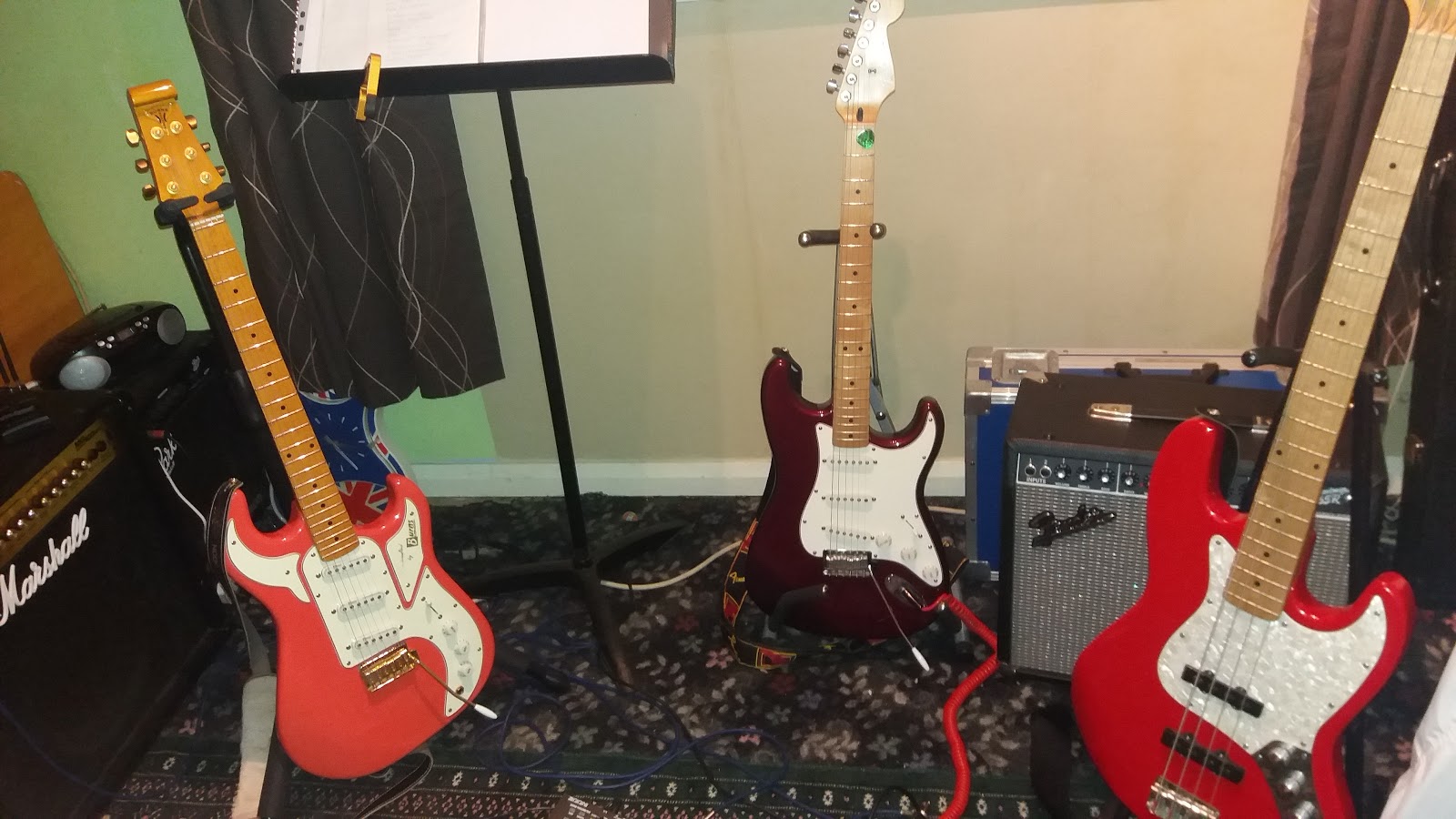 Here is a small selection from my collection, On the left is my Burns Marquee, Centre is my Fender Stratocaster, On the right is my Rockwood Bass.